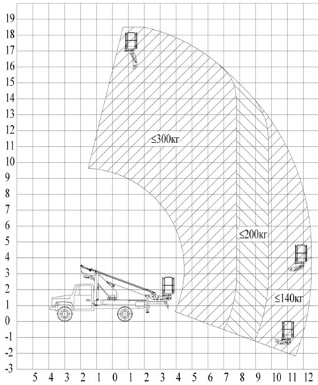 300 кг / до 7,5 м 200 кг /от 7,5 до 9,7 м 140 кг /от 9,7 до 12,5 м |
