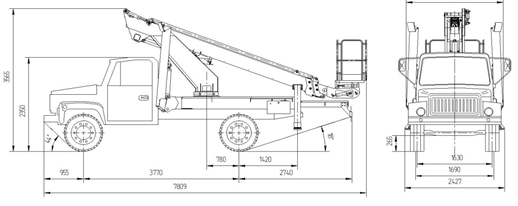 Габаритные размеры подъемника в транспортном положении, мм, не более: |